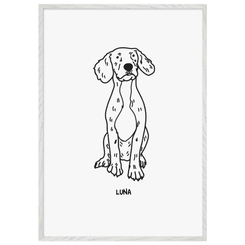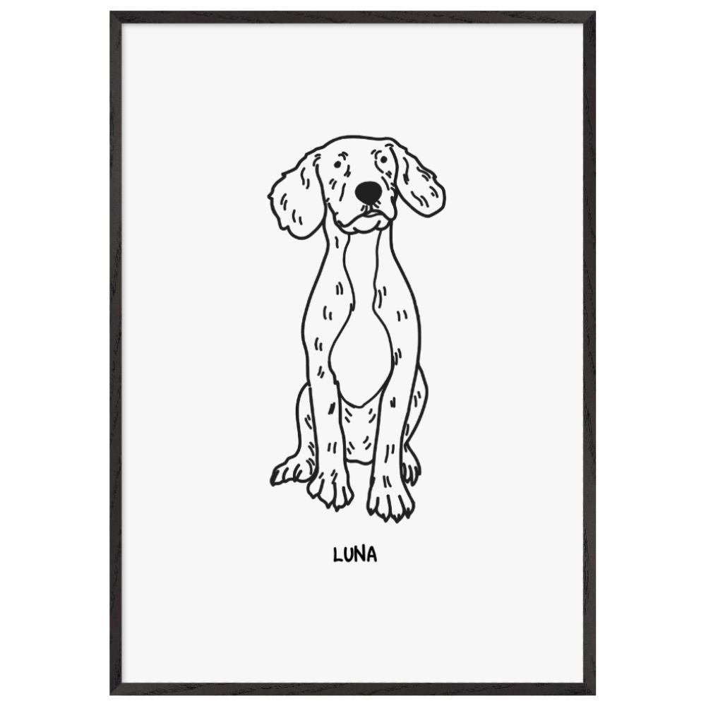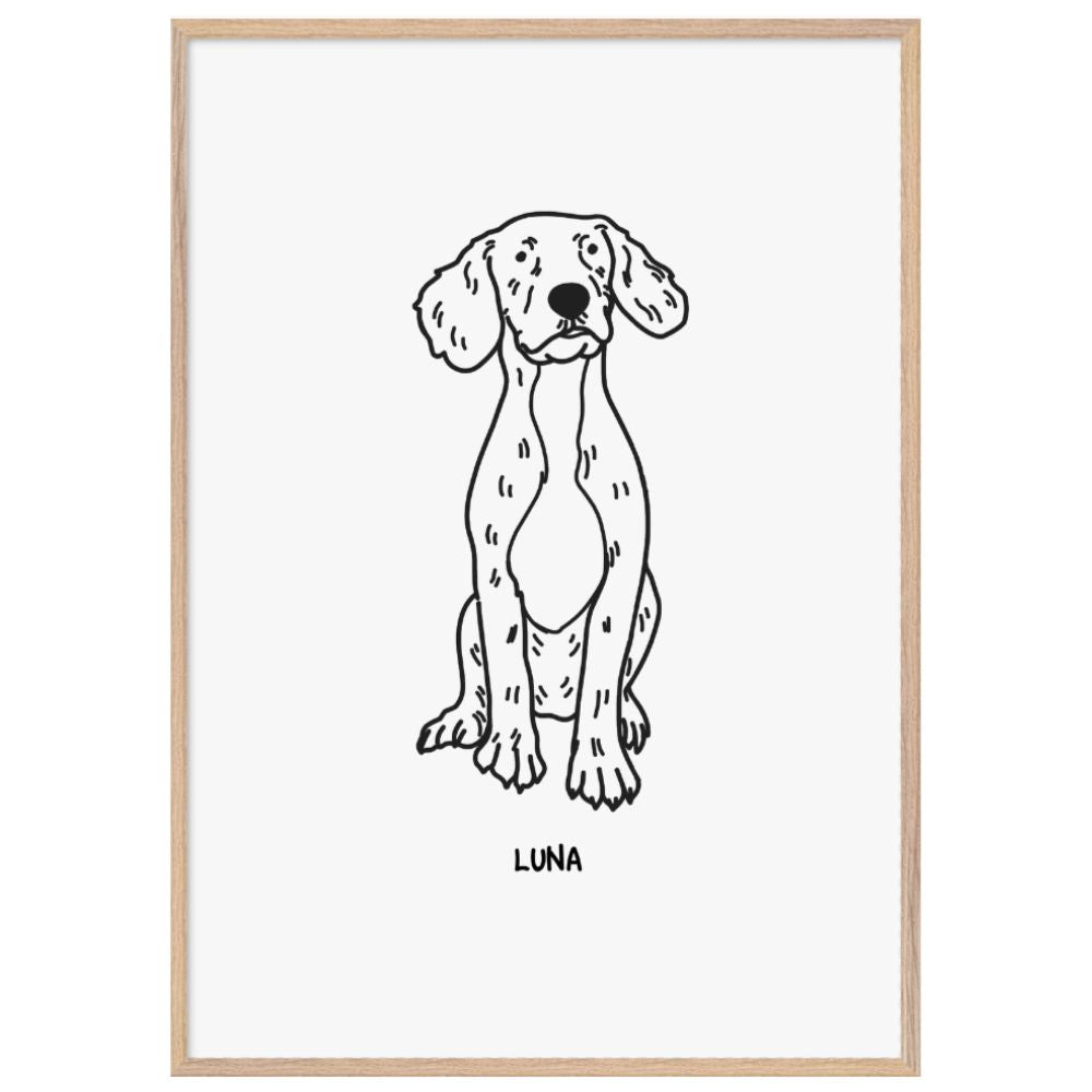 This pet photo transformation is ready-to-hang premium wooden frames, crafted from responsibly sourced oak or ash, feature unique wood grains for added character, making them ideal for those seeking to showcase world-class quality artwork.