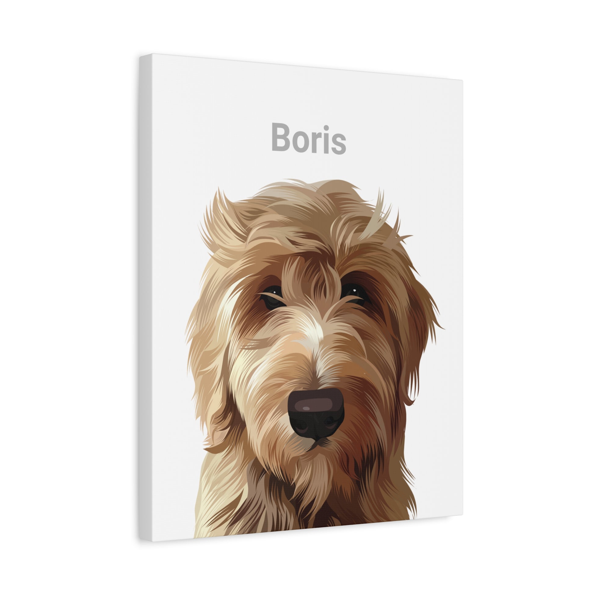 Transform your pet's photo into a unique cartoon-style pet portrait. Create personalized pet artwork printed on canvas. Perfect as a gift or home decor.