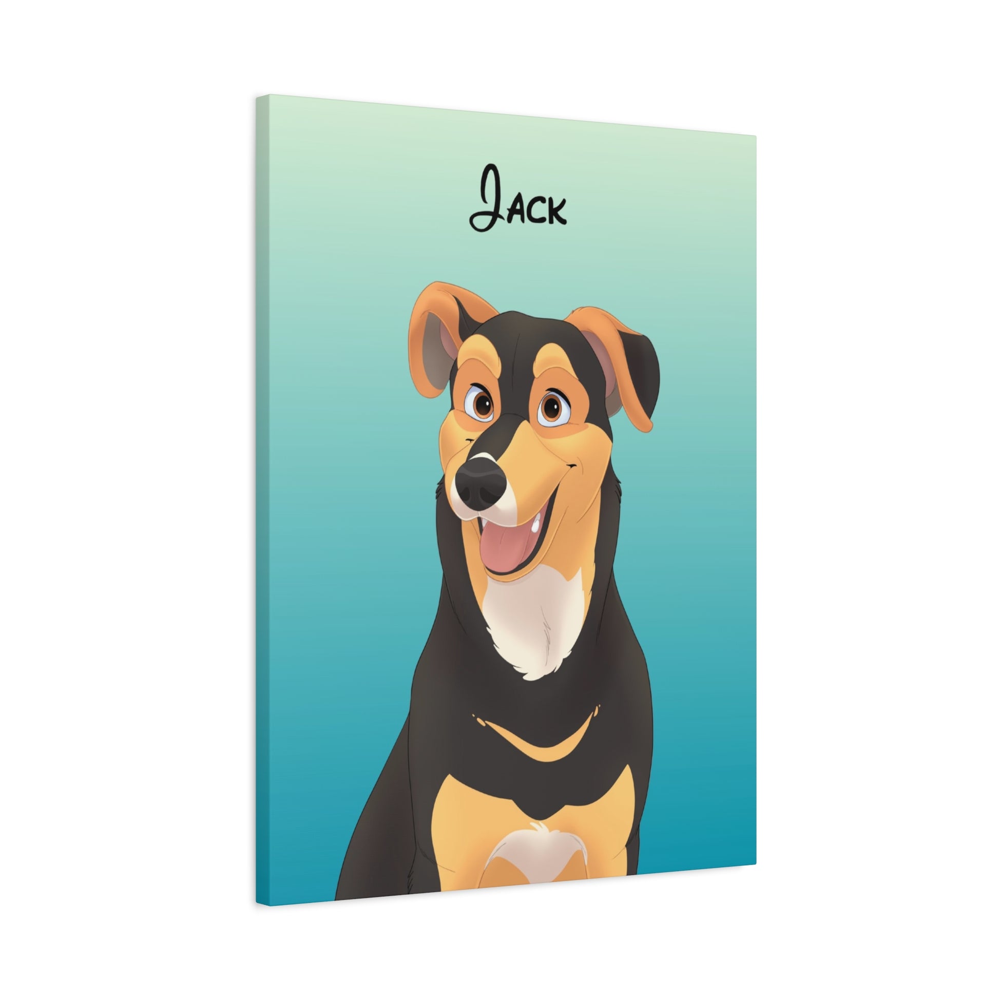 Transform your pet's photo into a unique Disney Style Cartoon Pet Portrait. Create personalized pet artwork printed on canvas. Perfect as a gift or home decor.